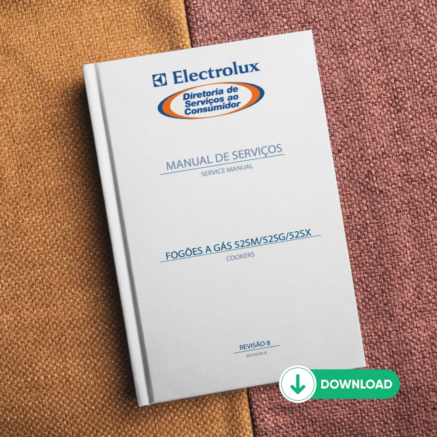Etiquetas: manual técnico de estufas Electrolux, estufas 52SM, manual 52SG, manual 52SX, guía de servicio de estufas Electrolux, conversión de GLP a NG, instalación de estufas a gas, mantenimiento de estufas Electrolux, diagrama eléctrico de la estufa, descargar manual de la estufa en PDF.