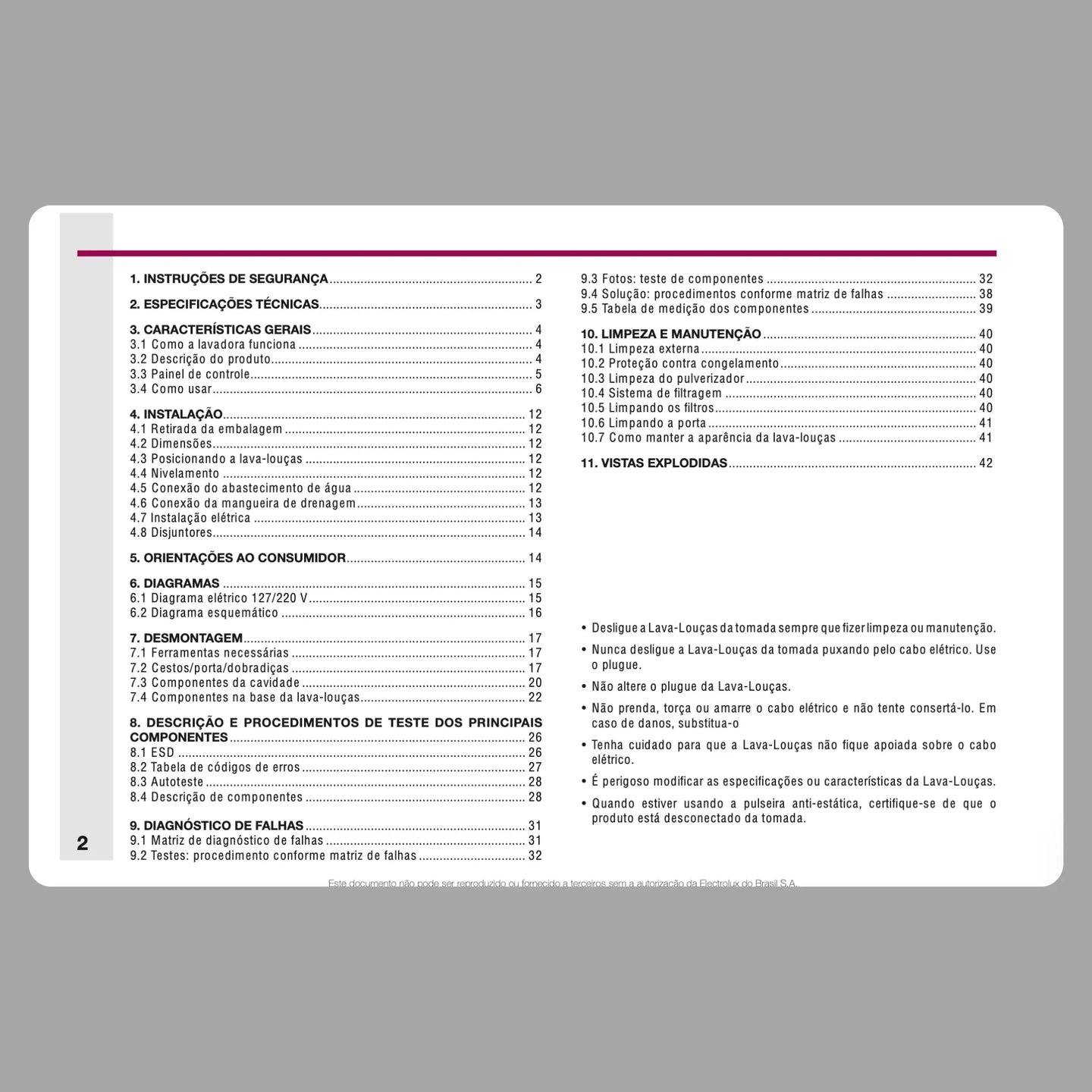 Manual técnico del lavavajillas Electrolux LL08B / LL08S Contenido