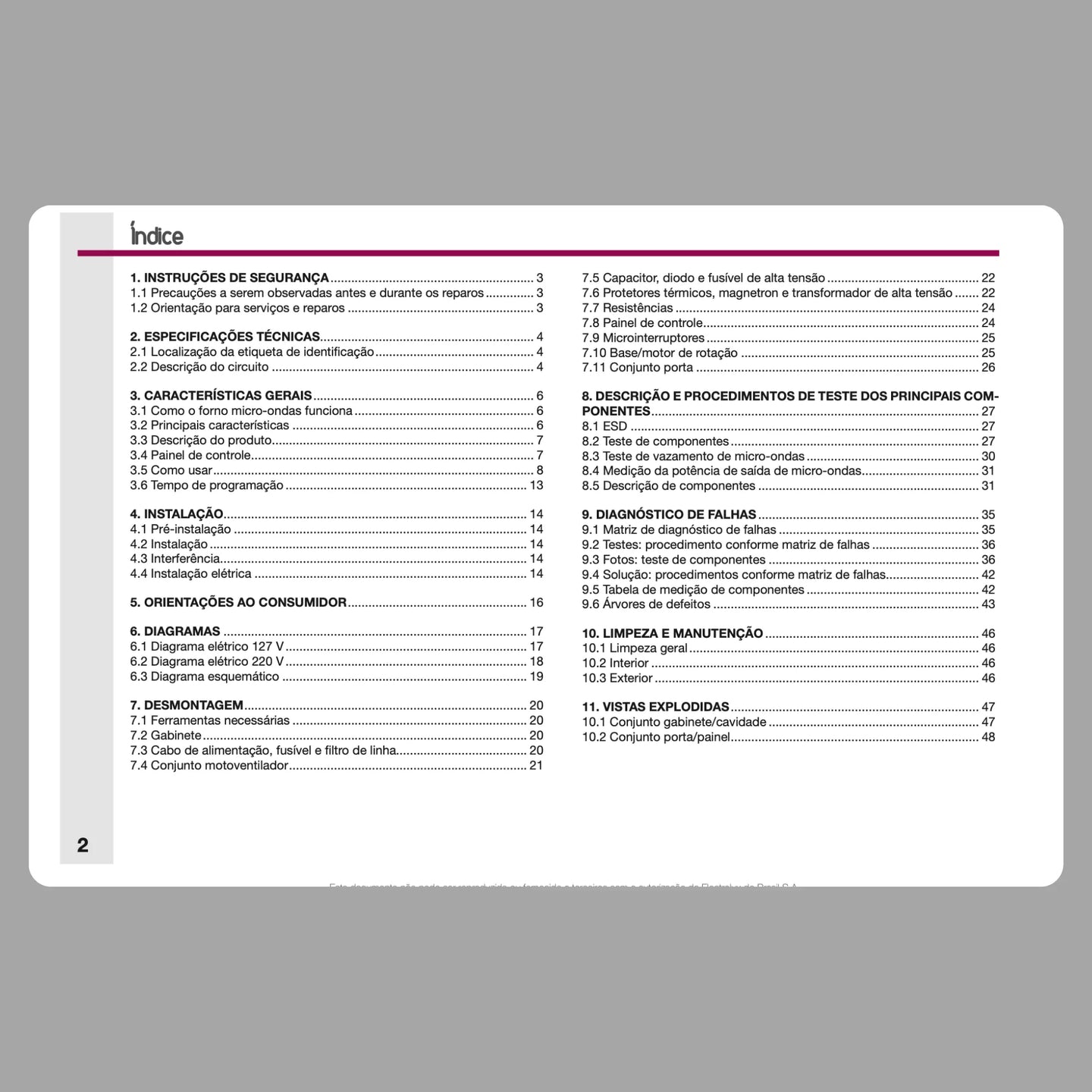 Manual técnico del microondas Electrolux ME33S Contenido