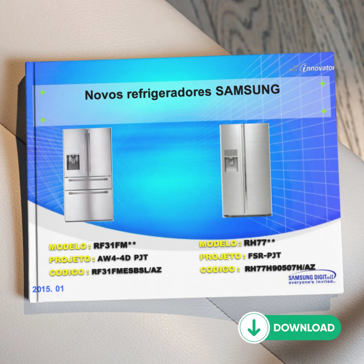 Tags: manual técnico Samsung RF31FM, Samsung RH77, manutenção refrigerador Samsung, reparo RF31FM, desmontagem Samsung RH77, códigos de erro RF31FM, assistência técnica Samsung, diagrama elétrico RH77.
